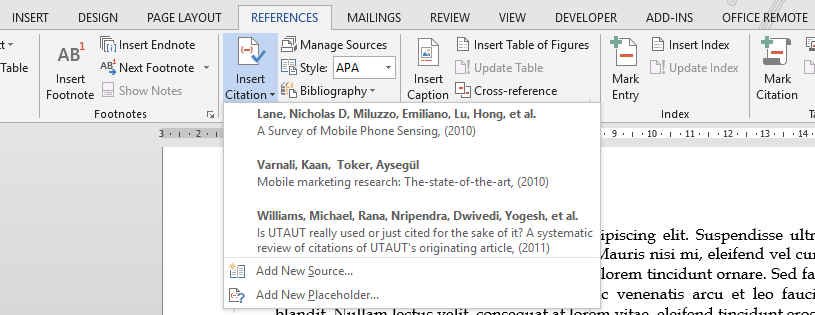 Turns out that Microsoft Word has very neat and powerful built-in referencing feature, which supports several different citation standards (including APA, which was our faculty’s choice). However, I soon discovered that although Word lists every reference only once in the automatically generated bibliography, it treats every citation in the text itself as a new and unique entity. Therefore by default it was impossible for me to write as we were instructed by my faculty: “If the original source has three or more authors, all names separated with a comma are written in the first reference: (Jauhiainen, Pirhonen & Silvennoinen, 2009). When referring to the source for the second time, it is enough to write the first author’s name and “etc.”, a comma and the year: (Jauhiainen etc., 2009).“