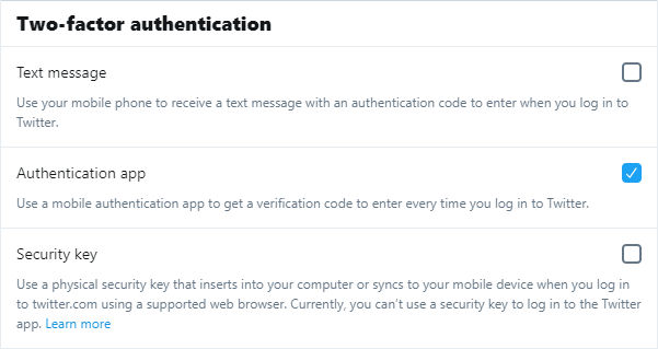 - SMS verification is demonstrably a terrible two-factor method, so prefer mobile security app or a hardware security key.